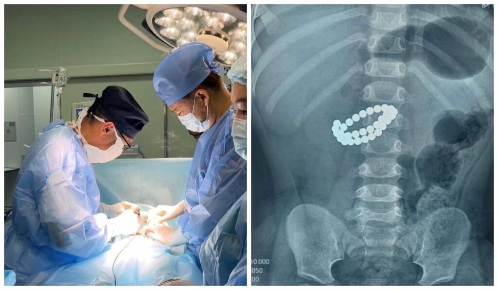 1 жас 9 айлық бала 31 магнит жұтып қойып, ішегіне ауыр зақым келіп, ауруханаға жеткізілген.